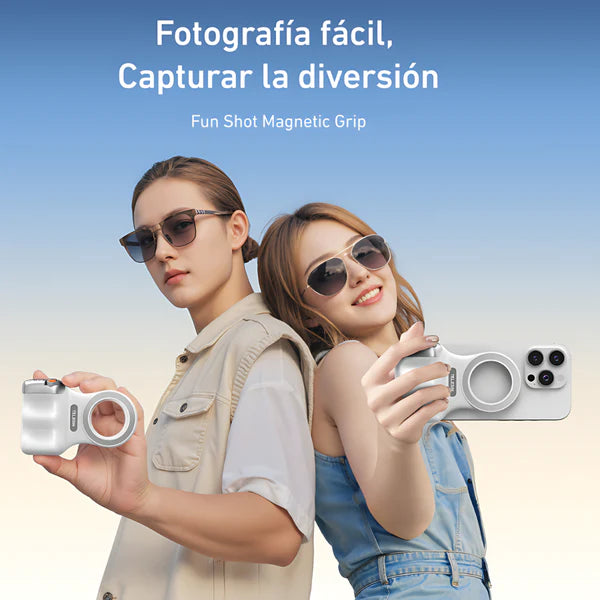 Agarre magnético con luz y disparo inalámbrico. Estabilidad y control profesional en tu smartphone.